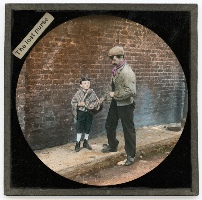 Meg et Jim Norris sont deux enfants vivant dans la misère (plaque 1). Ils avaient une belle maison auparavant, mais l'alcoolisme de leur père a causé leur chute dans la société. Pour survivre, les deux jeunes enfants vendent des allumettes dans la rue (plaque 2). Jim étant de faible constitution, Meg le laisse assis sur des marches, emmitouflé dans son châle, et vend seule leurs deux parts (plaque 3). Ayant réussi à tout vendre, elle part chercher de nouvelles allumettes et laisse le jeune garçon seul. A son retour, elle retrouve son frère avec un shilling en main (plaque 4).Très heureux, il lui explique la manière dont il a gagné cet argent. Il a vu une femme perdre son sac, alors qu'elle montait dans une voiture. Il a alors récupéré le sac et a tenté de rattraper la voiture en vain. Bill, un autre jeune garçon, a assisté à la scène et a proposé alors de rendre le sac à la dame et offre à Jim un shilling contre le sac. Trouvant l'idée honnête, Jim a ainsi accepté le shilling qu'il montre à présent à sa soeur (plaque 5). Mais à l'écoute de cette histoire, Meg est furieuse : le jeune Bill n'est pas quelqu'un d'honnête et il a manipulé son frère pour qu'il lui vende le sac. Le jeune garçon n'aurait jamais du céder le bien d'autrui ! Elle court rattraper Bill, laissant Jim à ses pleurs (plaque 6).
