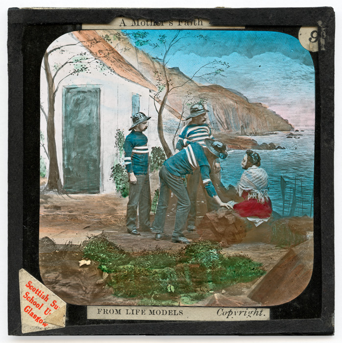 Bien que le livret accompagnant la série ne soit pas conservé à la Cinémathèque française, il est possible, d'après les titres figurant sur chaque plaque, de déterminer la trame narrative de l'histoire. Le récit se déroule dans un village de bord de mer. Une jeune femme annonce tristement à une femme plus âgée que son fils a pris la mer (plaque 1). Un autre homme, Paul, entendant la conversation, vient prévenir la jeune femme de ne pas effrayer la vieille femme avec ses paroles (plaque 2). La vieille femme rentre alors chez elle et prie pour le salut de son fils (plaque 3).