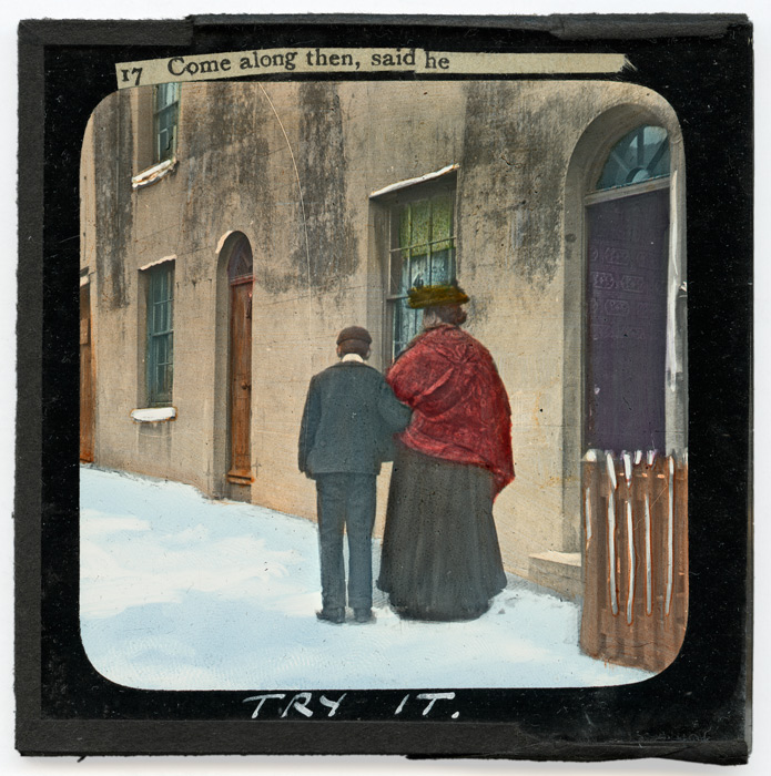 Mr et Mme Peacock ont trois enfants : Timothy, Victoria Jane et Billy. Ils vivent pauvrement, mais tous deux s'accordent quelques penny pour boire une bière de temps en temps. Un jour de pluie, Mme Peacock fait des courses (plaque 1), alors que son mari est au bar (plaque 2). En passant devant différents magasins (plaques 3 et 4), elle voit à chaque fois le même type d'annonces pour les nouveaux produits disant « Essayez-le». Même son épicier lui propose des nouveaux produits et ils ponctuent chacune de ses phrases par « Essayez-le » (plaque 5). Elle se rend ensuite à la pharmacie où la encore on lui propose un nouveau remède « à essayer » (plaque 6). En rentrant chez elle, Mme Peacock repense à tous ses produits qu'il est possible d'essayer et le refrain « essayez-moi » trotte ainsi dans sa tête (plaque 7). Quelques jours plus tard, elle se rend à une réunion sur l'abstinence (plaque 8), alors qu'elle ne suit pas totalement leurs recommandations. Cependant le sermon du prêtre marque tant que son esprit que, cette fois ci, elle est prête à « essayer » l'abstinence (plaque 9). Les mois passent et le jour de Noël arrive (plaque 10). En rentrant de la messe, son mari, plus saoul qu'à l'accoutumée, réclame son dîner (plaque 11). Avec un regard malicieux, elle prépare le repas (plaque 12), dresse le couvert avec sa fille (plaque 13) et apporte à table un plat qui surprend le mari (plaque 14). Il s'attendait à un repas maigre vu les petits revenus de la famille. Il pense alors que sa femme a volé la pièce de viande, mais elle ne lui donne aucune réponse et promet de tout expliquer à la fin du repas. C'est alors que l'aîné des enfants, Timothy, remarque par la fenêtre une voisine qui erre seule en ce soir de Noël (plaque 15). Il demande l'accord de ses parents pour l'inviter à se joindre à eux et ceux-ci acceptent. Il va chercher la vieille dame (plaque 16), la ramène chez lui (plaque 17) et lui propose la chaleur réconfortante d'un foyer (plaque 18). Mme Peacock apporte alors un plumpouding, ce qui finit d'étonner Mr Peacock (plaque 19). Mme Peacock explique alors toute l'histoire à son mari, ses enfants et la voisine : depuis quelques mois elle suit les réunions d'abstinents et elle a depuis économisé chaque penny qu'elle dépensait avant pour l'alcool. Grâce à ses économies, elle a pu offrir ce véritable dîner de Noël (plaque 20). A la fin de la soirée, Mr Peacock a lui aussi une révélation à faire à sa femme : si, grâce aux quelques pennies qu'elle ne dépense plus dans l'alcool, ils peuvent s'offrir de si bons repas, qu'en serait-il si lui ne dépensait plus leur argent au bar ? Il prend alors la décision de devenir lui aussi abstinent (plaque 21).
