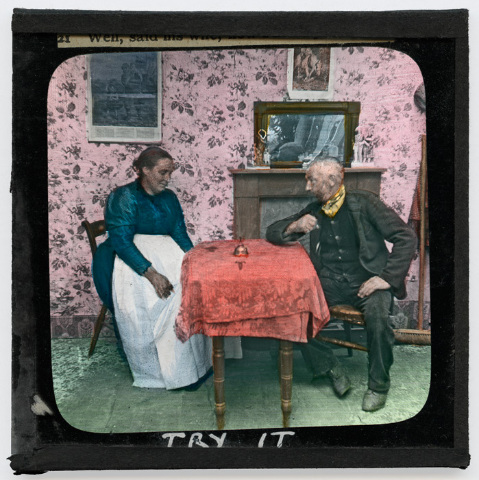 Mr et Mme Peacock ont trois enfants : Timothy, Victoria Jane et Billy. Ils vivent pauvrement, mais tous deux s'accordent quelques penny pour boire une bière de temps en temps. Un jour de pluie, Mme Peacock fait des courses (plaque 1), alors que son mari est au bar (plaque 2). En passant devant différents magasins (plaques 3 et 4), elle voit à chaque fois le même type d'annonces pour les nouveaux produits disant « Essayez-le». Même son épicier lui propose des nouveaux produits et ils ponctuent chacune de ses phrases par « Essayez-le » (plaque 5). Elle se rend ensuite à la pharmacie où la encore on lui propose un nouveau remède « à essayer » (plaque 6). En rentrant chez elle, Mme Peacock repense à tous ses produits qu'il est possible d'essayer et le refrain « essayez-moi » trotte ainsi dans sa tête (plaque 7). Quelques jours plus tard, elle se rend à une réunion sur l'abstinence (plaque 8), alors qu'elle ne suit pas totalement leurs recommandations. Cependant le sermon du prêtre marque tant que son esprit que, cette fois ci, elle est prête à « essayer » l'abstinence (plaque 9). Les mois passent et le jour de Noël arrive (plaque 10). En rentrant de la messe, son mari, plus saoul qu'à l'accoutumée, réclame son dîner (plaque 11). Avec un regard malicieux, elle prépare le repas (plaque 12), dresse le couvert avec sa fille (plaque 13) et apporte à table un plat qui surprend le mari (plaque 14). Il s'attendait à un repas maigre vu les petits revenus de la famille. Il pense alors que sa femme a volé la pièce de viande, mais elle ne lui donne aucune réponse et promet de tout expliquer à la fin du repas. C'est alors que l'aîné des enfants, Timothy, remarque par la fenêtre une voisine qui erre seule en ce soir de Noël (plaque 15). Il demande l'accord de ses parents pour l'inviter à se joindre à eux et ceux-ci acceptent. Il va chercher la vieille dame (plaque 16), la ramène chez lui (plaque 17) et lui propose la chaleur réconfortante d'un foyer (plaque 18). Mme Peacock apporte alors un plumpouding, ce qui finit d'étonner Mr Peacock (plaque 19). Mme Peacock explique alors toute l'histoire à son mari, ses enfants et la voisine : depuis quelques mois elle suit les réunions d'abstinents et elle a depuis économisé chaque penny qu'elle dépensait avant pour l'alcool. Grâce à ses économies, elle a pu offrir ce véritable dîner de Noël (plaque 20). A la fin de la soirée, Mr Peacock a lui aussi une révélation à faire à sa femme : si, grâce aux quelques pennies qu'elle ne dépense plus dans l'alcool, ils peuvent s'offrir de si bons repas, qu'en serait-il si lui ne dépensait plus leur argent au bar ? Il prend alors la décision de devenir lui aussi abstinent (plaque 21).