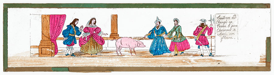 Heureusement, les grands du royaume, las de ne plus voir leur belle princesse, décidèrent de lui offrir la couronne du royaume afin de forcer la belle-mère à la libérer (plaque 3, vue 7). La belle-mère et Truitonne fuirent alors vers le royaume de Charmant (plaque 4, vue 8). Florine accompagné de son oiseau bleu s'y rendit également. Sur son chemin elle rencontra une fée à qui elle raconta toute son histoire. La fée émue tant par la beauté de la princesse que par son coeur, défit le mauvais sort de Charmant qui retrouva forme humaine (plaque 4, vue 9). Pour punir la belle-mère de sa méchanceté, la fée changea définitivement Truitonne en truie et Florine et Charmant purent enfin se marier (plaque 5).