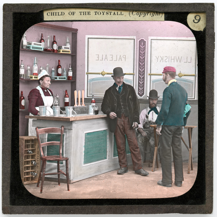 L'histoire se concentre autour d'une fillette, Maggie, héroïne malheureuse évoquant Oliver Twist ou le Rémi de Sans Famille. Maggie est une petite fille pauvre, qui ne peut qu'admirer les jouets du marchand Tom Fowler (plaque 1). La première bienfaitrice de Maggie apparaît à la plaque 2, accompagnée de son enfant. Alors qu'elle offre un jouet à sa petite fille, elle voit la tristesse de la pauvre Maggie et décide de lui offrir le jouet qu'elle souhaite. Maggie, comblée de joie, choisit une poupée (plaques 2, 3 et 4). De retour chez elle, Maggie admire son trésor. Cette poupée est le seul bien qu'elle possède. Mais qu'importe, la petite Maggie est heureuse avec sa poupée et elle s'endort doucement (plaque 5). Apparaît alors le père de Maggie (plaque 6). A son réveil, il voit le trésor de sa fille, il trouve la poupée si jolie qu'il décide de la faire admirer à ses amis, au pub (plaques 7 et 8). Les plaques 9 à 12 mettent en lumière les méfaits de l'alcoolisme : la fille de la tenancière du pub veut cette jolie poupée, le père de Maggie décide alors d'échanger le trésor de sa fille contre quelques verres de Gin. Pendant ce temps, Maggie se réveille toute seule et découvre avec stupeur que sa poupée a disparu, envahie de tristesse, elle retourne chez le marchand de jouets (plaques 13 et 14). Emu par la petite fille, il décide de faire partager son métier avec Maggie afin qu'elle se console (plaque 15). Mais un nouveau drame survint, Maggie apprend que son père est à l'hôpital, mourant. Elle se précipite à son chevet (plaque 16). Le pauvre homme, plein de remords sur son lit de mort, confie à sa fille qu'il lui a volé sa poupée. Maggie pardonne avant que son père ne meurt (plaques 17 et 18). Désormais orpheline, elle retourne chez Tom Fowler qui décide de prendre complètement en charge l'enfant (plaque 19). L'homme est âgé et la maladie le guette aussi, Maggie continue seule la vente des jouets pour aider son ami (plaque 20). Un médecin, le Dr. Hall, ami du marchand de jouet, attendri par la fillette lui offre un thé et des gâteaux (plaques 21 à 23) et aussi de quoi acheter du charbon, se rendant compte qu'il n'y a pas de feu dans la cheminée de la chambre du malade (plaque 24). La brave Maggie reste au chevet de son bienfaiteur et lui lit la Bible (plaques 25 et 26), alors que la fille du Dr. Hall leur rend visite et apporte des vivres (plaque 27). Le livret accompagnant la projection nous apprend que la fillette est recueillie par le médecin, et entre à son service où elle reçoit un bon salaire. En mémoire de son vieil ami, Tom Fowler, qui a tant fait pour elle, chaque été elle fleurit sa tombe (plaque 28).