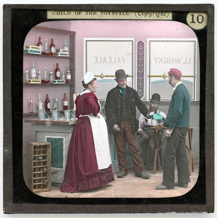L'histoire se concentre autour d'une fillette, Maggie, héroïne malheureuse évoquant Oliver Twist ou le Rémi de Sans Famille. Maggie est une petite fille pauvre, qui ne peut qu'admirer les jouets du marchand Tom Fowler (plaque 1). La première bienfaitrice de Maggie apparaît à la plaque 2, accompagnée de son enfant. Alors qu'elle offre un jouet à sa petite fille, elle voit la tristesse de la pauvre Maggie et décide de lui offrir le jouet qu'elle souhaite. Maggie, comblée de joie, choisit une poupée (plaques 2, 3 et 4). De retour chez elle, Maggie admire son trésor. Cette poupée est le seul bien qu'elle possède. Mais qu'importe, la petite Maggie est heureuse avec sa poupée et elle s'endort doucement (plaque 5). Apparaît alors le père de Maggie (plaque 6). A son réveil, il voit le trésor de sa fille, il trouve la poupée si jolie qu'il décide de la faire admirer à ses amis, au pub (plaques 7 et 8). Les plaques 9 à 12 mettent en lumière les méfaits de l'alcoolisme : la fille de la tenancière du pub veut cette jolie poupée, le père de Maggie décide alors d'échanger le trésor de sa fille contre quelques verres de Gin. Pendant ce temps, Maggie se réveille toute seule et découvre avec stupeur que sa poupée a disparu, envahie de tristesse, elle retourne chez le marchand de jouets (plaques 13 et 14). Emu par la petite fille, il décide de faire partager son métier avec Maggie afin qu'elle se console (plaque 15). Mais un nouveau drame survint, Maggie apprend que son père est à l'hôpital, mourant. Elle se précipite à son chevet (plaque 16). Le pauvre homme, plein de remords sur son lit de mort, confie à sa fille qu'il lui a volé sa poupée. Maggie pardonne avant que son père ne meurt (plaques 17 et 18). Désormais orpheline, elle retourne chez Tom Fowler qui décide de prendre complètement en charge l'enfant (plaque 19). L'homme est âgé et la maladie le guette aussi, Maggie continue seule la vente des jouets pour aider son ami (plaque 20). Un médecin, le Dr. Hall, ami du marchand de jouet, attendri par la fillette lui offre un thé et des gâteaux (plaques 21 à 23) et aussi de quoi acheter du charbon, se rendant compte qu'il n'y a pas de feu dans la cheminée de la chambre du malade (plaque 24). La brave Maggie reste au chevet de son bienfaiteur et lui lit la Bible (plaques 25 et 26), alors que la fille du Dr. Hall leur rend visite et apporte des vivres (plaque 27). Le livret accompagnant la projection nous apprend que la fillette est recueillie par le médecin, et entre à son service où elle reçoit un bon salaire. En mémoire de son vieil ami, Tom Fowler, qui a tant fait pour elle, chaque été elle fleurit sa tombe (plaque 28).