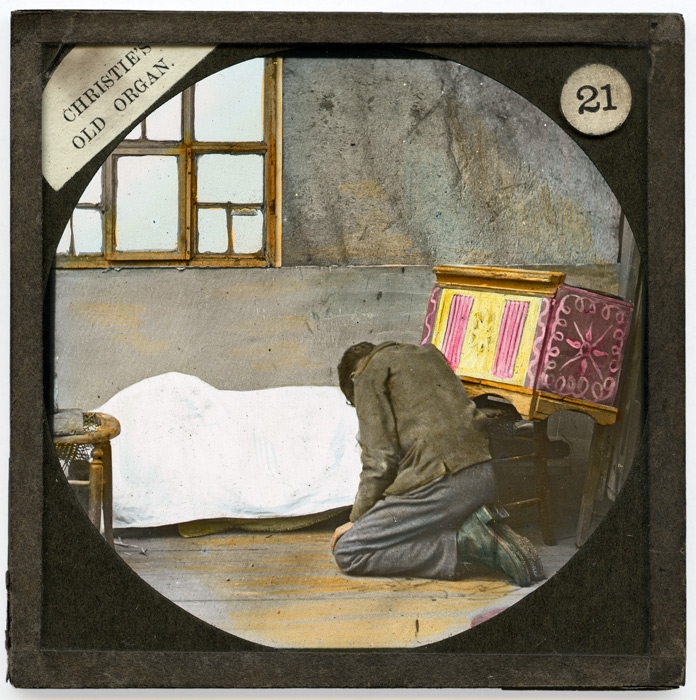 Les vingt-quatre plaques de type Life Models ici présentées retracent l'histoire de la rencontre entre Christie, jeune garçon sans famille, et Treffy, vieil homme solitaire et joueur d'orgue de Barbarie. Treffy n'a plus que son orgue de Barbarie pour le distraire (plaque 2). Christie est un jeune garçon, sans abri, qui aime écouter le vieil homme jouer, mais à son insu (plaque 3). Un jour, alors qu'il écoute Treffy, Christie entend ce dernier tomber. Le vieil homme ne se relevant pas, Christie entre dans la pièce pour l'aider et ainsi Christie et Treffy se rencontrent (plaque 4). Apprenant que Christie est sans abri, Treffy décide de partager sa modeste chambre avec le jeune garçon (plaque 5). Pour pourvoir à leur besoin, Treffy joue de l'orgue de Barbarie dans les rues (plaque 6), mais il tombe malade (plaque 7) et Christie décide de prendre le relais (plaque 8). Il joue devant une belle maison et deux fillettes, Mabel et Charlie, viennent à sa rencontre intriguées par l'instrument (plaque 9). De retour chez Treffy, celui ci n'allant pas mieux, Christie cherche alors un médecin pour examiner son ami (plaque 10). Mais les nouvelles sont mauvaises : Treffy n'a plus qu'un mois à vivre. Les deux malheureux se questionnent alors sur le Paradis mais l'un comme l'autre ne savent que peu de choses (plaque 11). Christie retourne jouer pour gagner de l'argent et la petite Mabel revient le voir (plaque 12). La voyant si distinguée, il pense qu'elle pourra sûrement l'éclairer sur le Paradis et le jeune garçon apprend ainsi où se trouve le Paradis (plaque 13). L'interrogation de Christie le pousse à se rendre à l'église (plaques 14 et 15). Il est passionné par ce qu'il y entend et lorsque le prêtre vient le voir à la fin de l'office, il est capable de réciter tout le sermon entendu. Le prêtre intrigué par ce jeune garçon le questionne sur sa vie et il apprend ainsi qu'il vit avec un vieil homme malade dans une chambre modeste (plaque 16). Malgré la maladie de Treffy, Christie garde espoir il continue de jouer de l'orgue de Barbarie pour subvenir à leurs besoins. Il rencontre une nouvelle fois Mabel, qui par affection lui offre un bouquet de fleurs (plaque 17). De retour chez Treffy, il trouve le vieil homme en compagnie du prêtre (plaque 18). Treffy explique à Christie que sa fin est proche et qu'il souhaite partir au son de son orgue (plaque 19). Christie joue alors que Treffy entre avec les anges au Paradis (plaque 20). Christie est désormais seul (plaque 21). Il n'a plus envie de jouer de l'orgue de Barbarie (plaque 22). La maladie le touche aussi et il reste des semaines sans pouvoir se lever de son lit (plaque 23). Un jour, il reçoit la visite du prêtre : il a une bonne nouvelle pour lui. Le père de Mabel lui a fait parvenir un chèque afin qu'il puisse aller à l'école pendant une année (plaque 24). Ainsi, Christie n'est pas aussi seul qu'il le pensait, quelqu'un a pensé à lui et désormais il n'aura plus à se soucier que de guérir pour profiter de la belle vie qui l'attend.