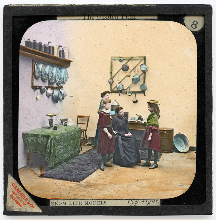 Le livret accompagnant la projection n'étant pas conservé à la Cinémathèque française, il est difficile de retracer avec justesse l'histoire de The Golden Path. Cependant le catalogue édité par Bamforth & Co en 1910 référence les titres de chaque plaque, ce qui permet de retrouver une trame narrative cohérente.