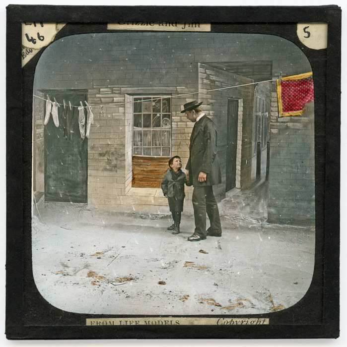 Elle pleure car son petit frère Teddy vient de mourir. Mr Thomson décide de la raccompagner à l'intérieur pour réconforter le reste de la famille (plaque 3). Il découvre alors la pauvreté de la famille et Mme Terriss, mère éplorée qui est en colère contre son mari : à cause de lui et de son penchant pour l'alcool, ils ne peuvent payer des funérailles dignes à leur enfant (plaque 4).