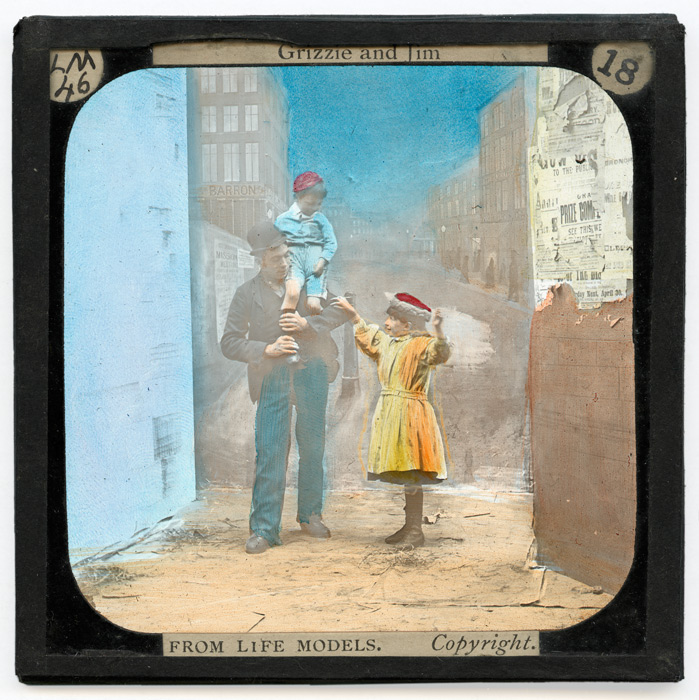 Elle pleure car son petit frère Teddy vient de mourir. Mr Thomson décide de la raccompagner à l'intérieur pour réconforter le reste de la famille (plaque 3). Il découvre alors la pauvreté de la famille et Mme Terriss, mère éplorée qui est en colère contre son mari : à cause de lui et de son penchant pour l'alcool, ils ne peuvent payer des funérailles dignes à leur enfant (plaque 4).